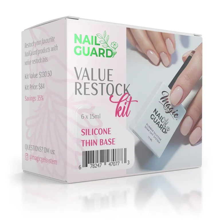You’ve been buying NailGuard™ by the tens so that you don’t run out. After all, not only is it the healthiest choice out there for gel manicures, nail overlays, and extensions, NailGuard™ saves you time and money. But you wanted even better value, and we want our customers happy. That’s why we’re launching the NailGuard™ Value Restock Kit. It’s the same great product in a value pack of 6 bottles that saves you a whopping 25% off. This NailGuard™ Value Restock Kit: