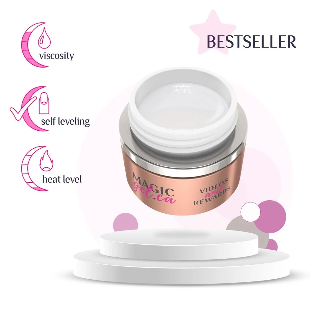 No more mess, liquids or spatulas. Just use it like your regular builder gel and start enjoying working with acrygel! Self leveling formula means faster sculpting, better results, much less filing and no lifting!