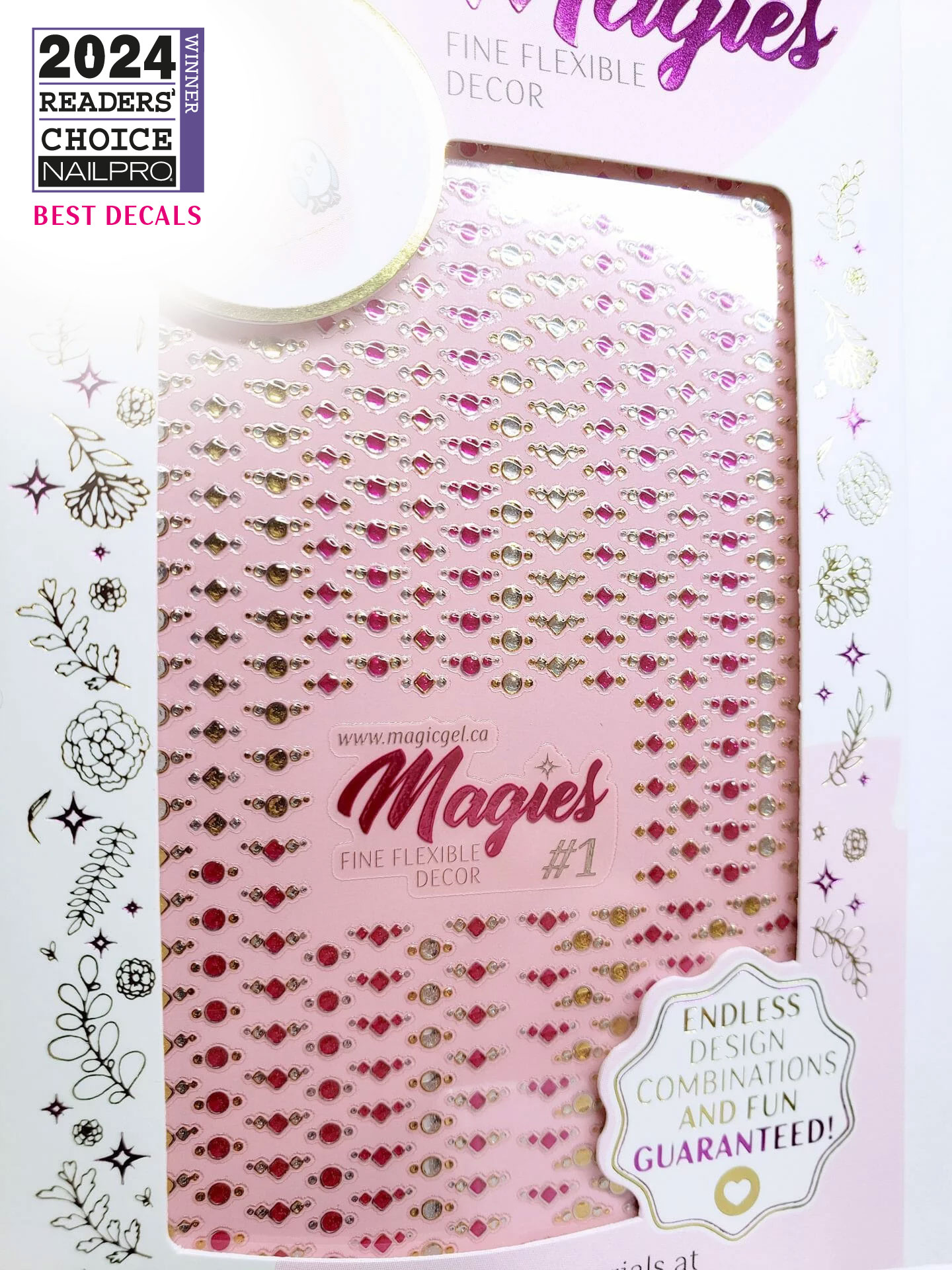 Add Magies to your service and transform your designs fast and easy. Each sheet features lots of Magies to last you for many nail services.