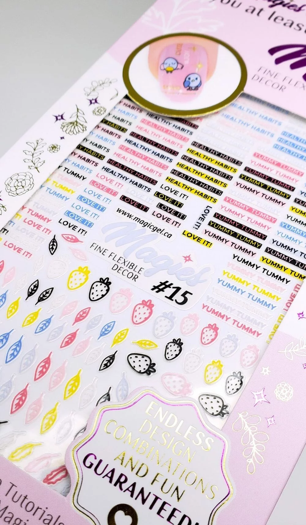 Add Magies to your service and transform your designs fast and easy. Each sheet features lots of Magies to last you for many nail services.