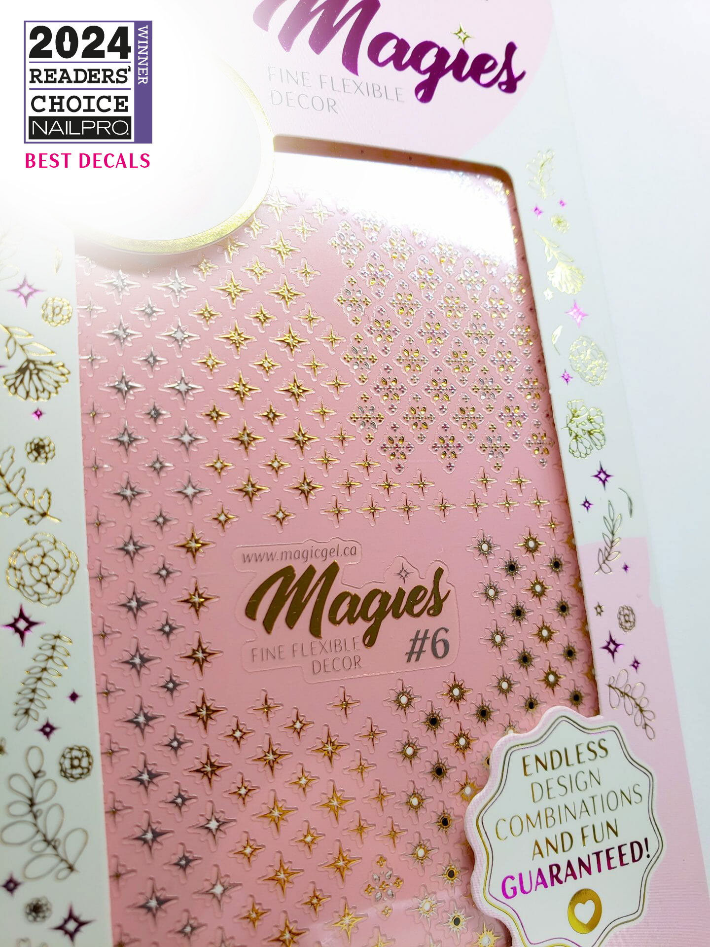 Add Magies to your service and transform your designs fast and easy. Each sheet features lots of Magies to last you for many nail services.