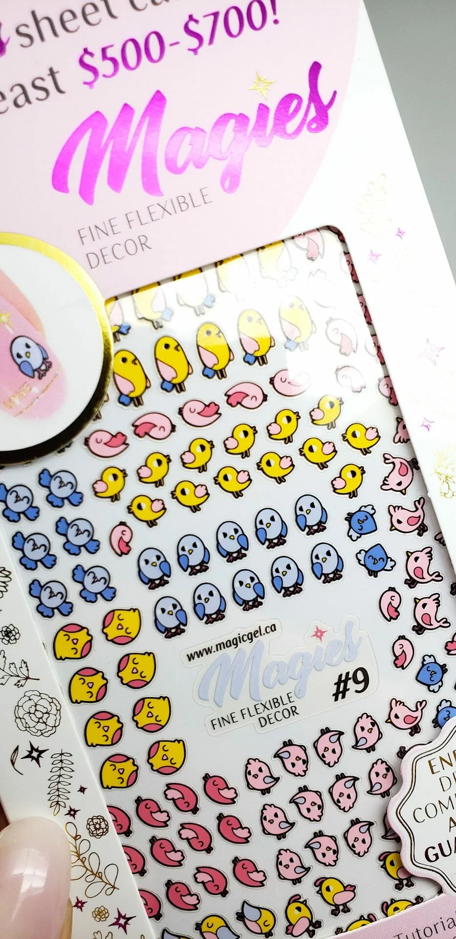 Add Magies to your service and transform your designs fast and easy. Each sheet features lots of Magies to last you for many nail services.